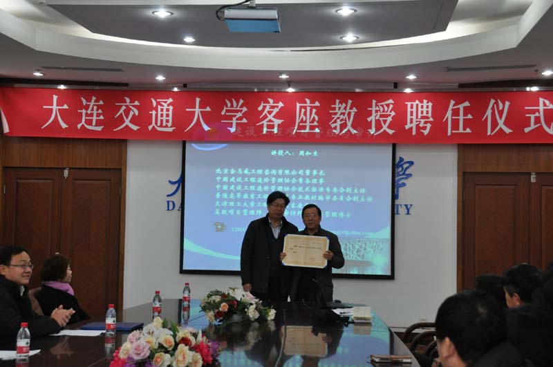 2013年1月9日,應大連交通大學邀請,我公司董事長周和生先生受聘為大連交通大學工程管理類學科客座教授,頒發客座教授聘書。